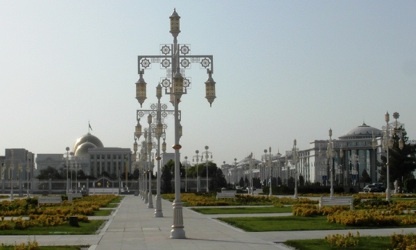 Walking down Turkmenbashy Avenue, I apparently strayed too close to the Presidential Palace complex. An officer swiftly instructed me to cross the street and added that photos were “nilzya” – forbidden (I still got the shot below from far, far away).