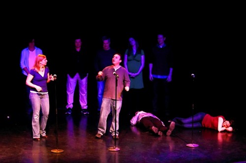 I stood at the back of the stage through the next two suggestions, feeling somewhat shell-shocked and fighting the urge to crawl into a hole. Finally, the last suggestion was one that we had done in rehearsal just a couple weeks earlier. So, I kind of cheated. I pushed myself back out to the microphone and recited something incredibly similar to what I said in the earlier rehearsal. To my great relief, people laughed and I felt slightly redeemed and a just a little bit more confident.