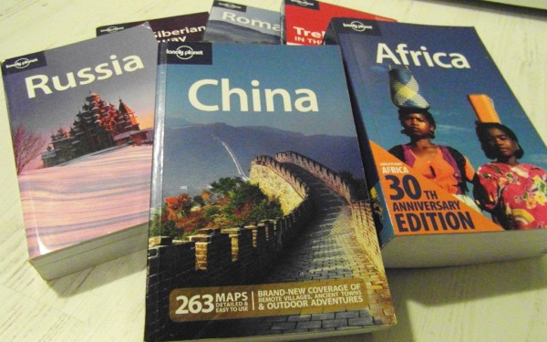 Long before I left, I built up a collection of LP guides: Russia, the Trans-Siberian Railway, Central Asia, Georgia, Armenia & Azerbaijan, Eastern Europe and a brand new Ukraine guide shortly before I departed. I highlighted, I underlined, I took notes like crazy. I read country histories and regional highlights to get an idea of what I might want to see. I jotted down recommend tour companies so I could check out their websites and the names and emails of recommended guides so I could reach out once I hit the road. I used listed prices for hotels and taxis and buses to create my budget, allowing for the fact that prices would likely go up a bit by the time I hit the road.